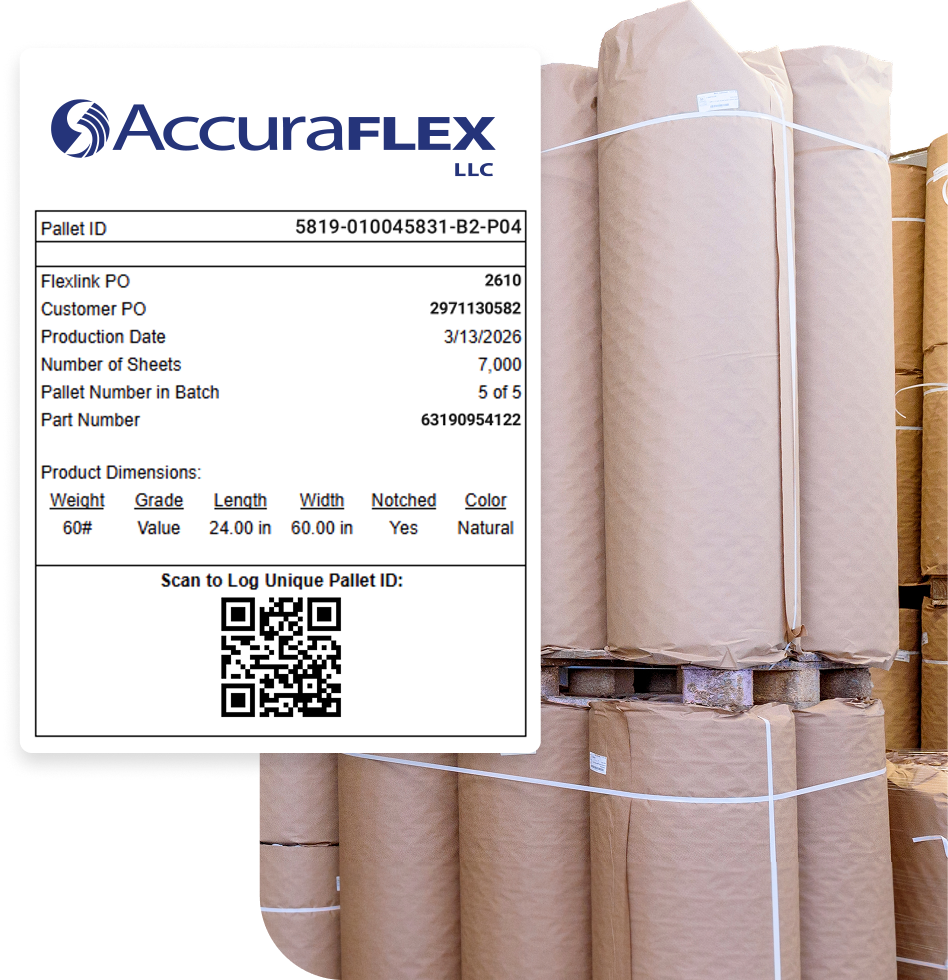 AccuraFLEX’s Roll Traceability Program provides immediate digital visibility into roll-level data and Certificates of Analysis (COA), allowing your team to move faster when investigating defects, product damage, or production inconsistencies. Our systems maintain detailed records of the paper used in every sheeting run, connecting each sheeted order to the original paper roll and its material characteristics.